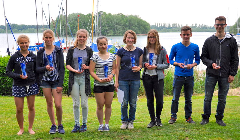 "Achtbar schlugen sich auch die Teams vom Paderborner Yacht Club mit Pia Jürgens/Janka Kroner auf Platz 8, Nora Wax/Roman Schwarz mit Platz 10, Jonas Kroner/Finn Schröder Platz 11, Tabea Jürgens/Friederieke Kley Platz 12.", ergänzt Andreas Wax vom Paderborner Yachtclub.